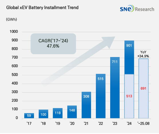 Global Battery Usage Up 34.9% from January to August [businesskorea]
