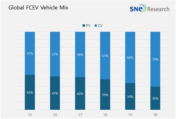 Global FCEV Market Projected to Reach 3.03 million Units by 2040, with Commercial Vehicles Accounting for 70%