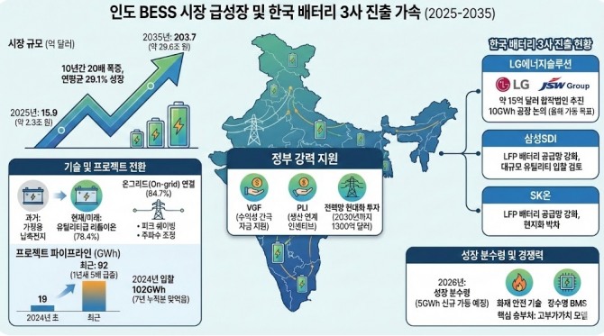 인도, 배터리 저장장치 시장 2035년 30조 원 돌파 전망…한국 배터리 3사 진출 가속 [글로벌이코노믹]