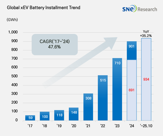 (출처: 2025년 11월 Global EV and Battery Monthly Tracker, SNE리서치)