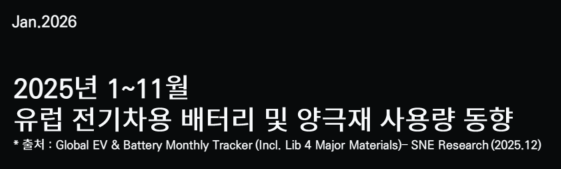 2025년 1~11월 유럽 전기차용 배터리 및 양극재 사용량 동향