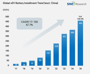 EV Battery Usage Excluding China Increases 26% Globally [businesskorea]