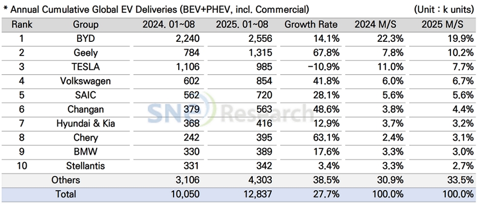 From Jan to July in 2025, Non-China Global Electric Vehicle Deliveries Recorded About 4.093 Mil Units