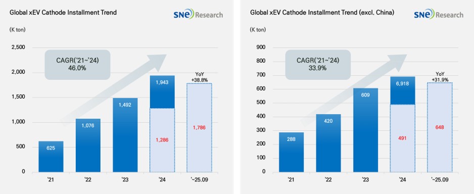 installment in non-China market was 648K ton, posting a 31.9% growth(Source: 2025 Oct Global EV & Battery Monthly Tracker (Incl. LiB 4
