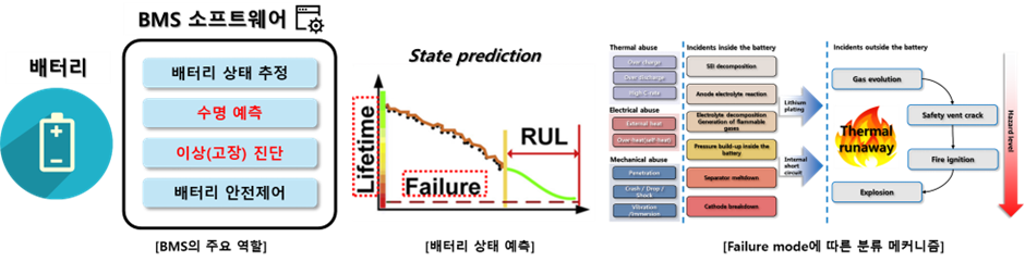 BMS의 S/W는 배터리의 SoX 상태 제어 및 관리를 토대로 사용자에게 고도화된 정보를 제공한다. 배터리의 전기적 등가회로모델(Equivalent Circuit Model)을 기반으로 상태를 추정하는 다양한 방법들이 제시되고 있으나, 어플리케이션의 주행 중 빅데이터 수집의 중요성이 강조되면서 데이터 분석에 기반한 AI 알고리즘 또한 다양하게 개발되고 있다.