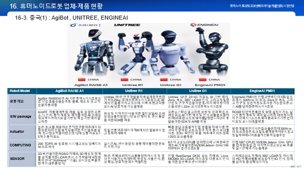 대한 시장이나 적용 시나리오 등 단발성의 일부 주제에 관한 보고서가 아닌, 로봇자체와 운영 S/W, 액추에이터 등 핵심 부품, 배터리 및 시장에 이르기까지 휴머노이드