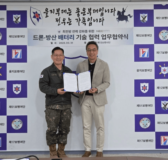 네오배터리머티리얼즈, 육군 12사단과 드론·방산 배터리 협력 [디일렉]