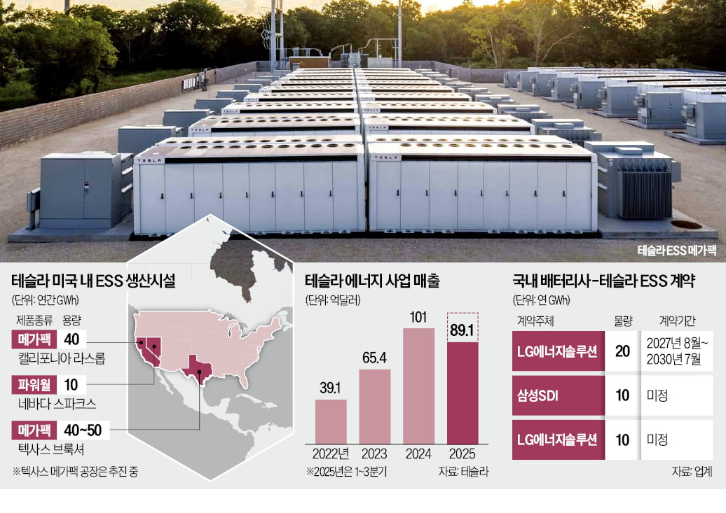 [단독] 'ESS 폭풍성장' 테슬라, 배터리 부족하자 韓에 러브콜 [한국경제]