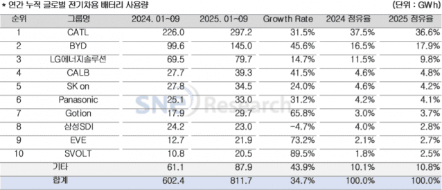1~9월 비(非)중국 배터리 시장 30%↑…K-배터리 점유율 5.4%p↓ [뉴스1]