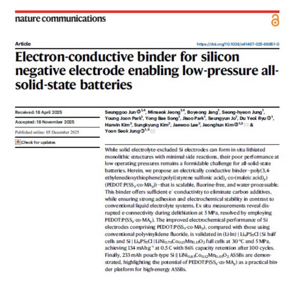 KAIST, ‘저비용’ 전고체배터리 핵심기술 개발 [KBS]